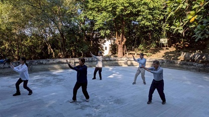 王樹金祖師爺のお墓の前で皆さまと一緒に太極拳をしました。